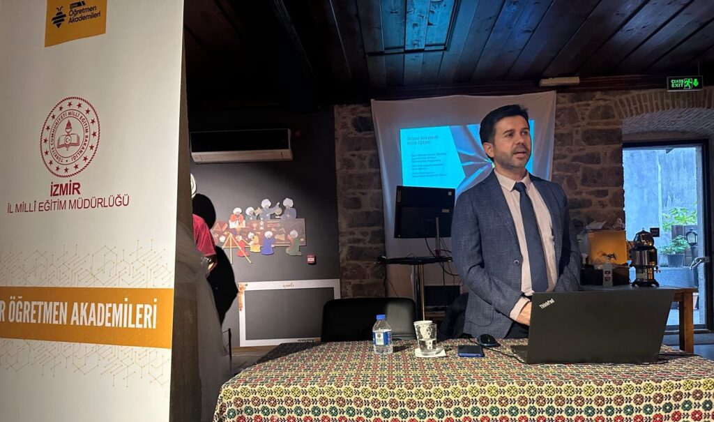 16 Nisan 2025 tarihinde Milli Eğitim Bakanlığı’nın 2024 yılından bu yana öğretmenlerin mesleki gelişimini desteklemek amacıyla farklı ilerde başlattığı Öğretmen Akademileri kapsamında Aydın’da Efeler Halk Eğitim Merkezi Konferans Salonu’nda İzmir Demokrasi Üniversitesi Otizm Uygulama ve Araştırma Merkezi Müdürü Dr. Öğr. Üyesi Orçun Berrakçay tarafından “Özel Eğitimde Müziksel Çalışmalar ve Örnekleri” başlıklı eğitim verildi. Eğitime Aydın Adnan Menderes Üniversitesi Güzel Sanatlar Eğitimi Bölümü Müzik Eğitimi Anabilim Dalı Öğretim Üyesi Prof. Dr. Onur Topoğlu, Aydın İl Milli Eğitim Müdürlüğü ARGE Birimi Uzmanı Neşem Yaşar ve öğretmenler katıldı.