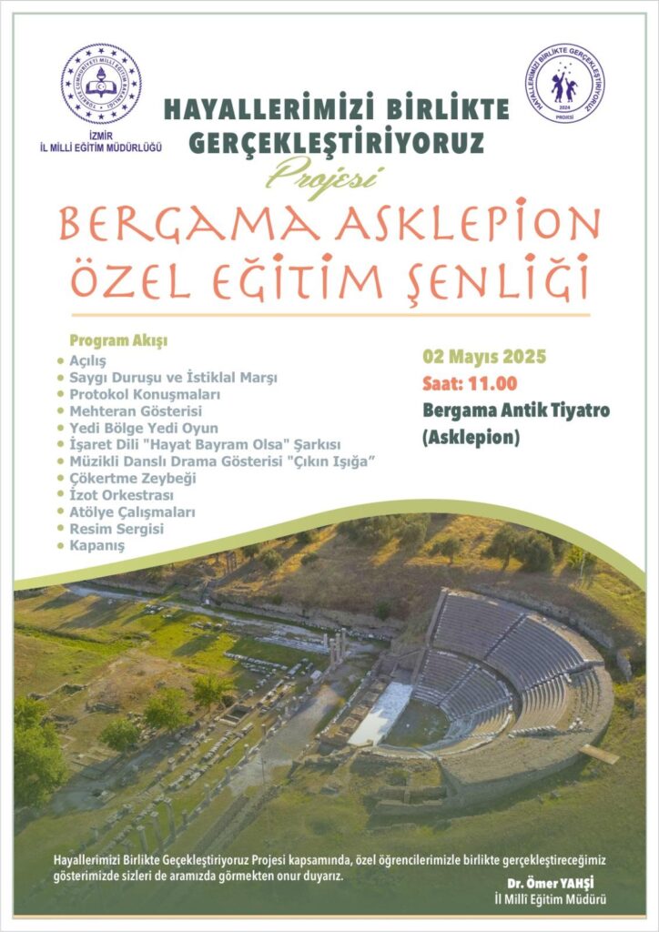 2 Mayıs 2025 tarihinde İzmir Demokrasi Üniversitesi Otizm Uygulama ve Araştırma Merkezi olarak İzmir İl Millî Eğitim Müdürlüğü tarafından yürütülen “Hayallerimizi Birlikte Gerçekleştiriyoruz” Projesi kapsamında Bergama Asklepion Antik Tiyatro’da Merkez Müdürü Dr. Öğr. Üyesi Orçun Berrakçay şefliğinde İZOT İzmir Otizm Orkestrası ve Korosu olarak sahne aldık.