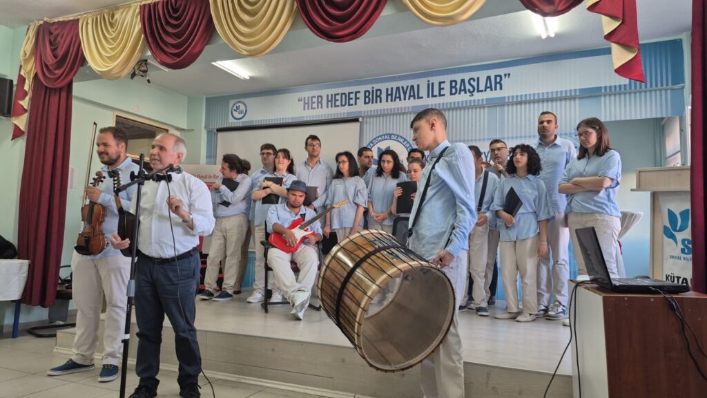 21 Mayıs 2025 tarihinde Kütahya Sosyal Bilimler Lisesi’nde İzmir Demokrasi Üniversitesi Otizm Uygulama ve Araştırma Merkezi olarak farkındalık etkinliği gerçekleştirdik. Öncelikle Okul Müdürü Ahmet İren tarafından uygulamalı bir eğitim müzesi şeklinde tasarlanmış liseyi otizmli öğrencilerimiz ve aileleri ile büyük bir hayranlıkla gezdik. Ardından Emekli Müzik Öğretmeni Mazlum Cihangir şefliğinde ve Uzman Psikolog Zeynep Sönmez Berrakçay moderatörlüğünde İZOT İzmir Otizm Orkestrası ve Korosu olarak sahne aldık.