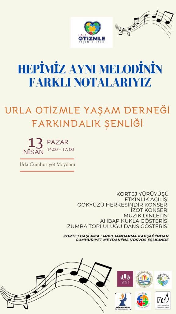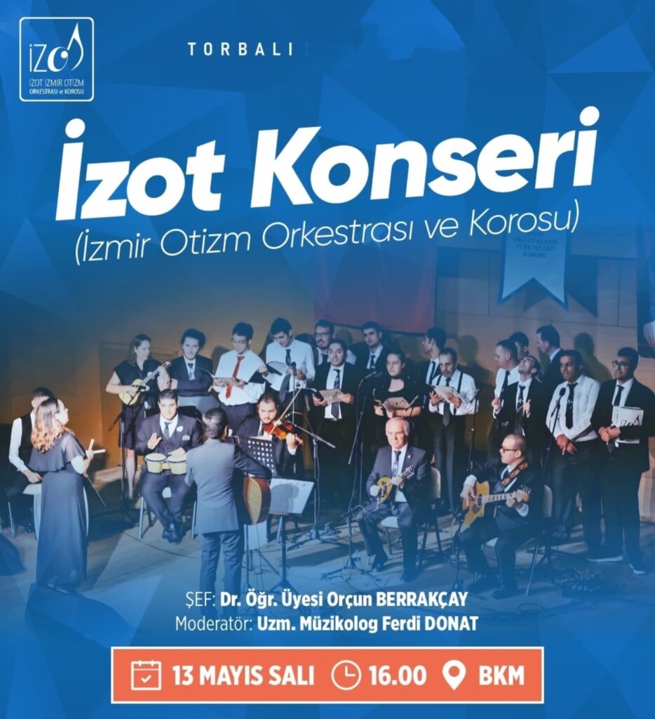 13 Mayıs 2025 tarihinde İzmir Demokrasi Üniversitesi Otizm Uygulama ve Araştırma Merkezi Müdürü Dr. Öğr. Üyesi Orçun Berrakçay şefliğinde ve Uzman Müzikolog Ferdi Donat moderatörlüğünde gerçekleşen otizm farkındalık etkinliğinde İZOT İzmir Otizm Orkestrası ve Korosu ile birlikte Torbalı BKM’de sahne aldık.