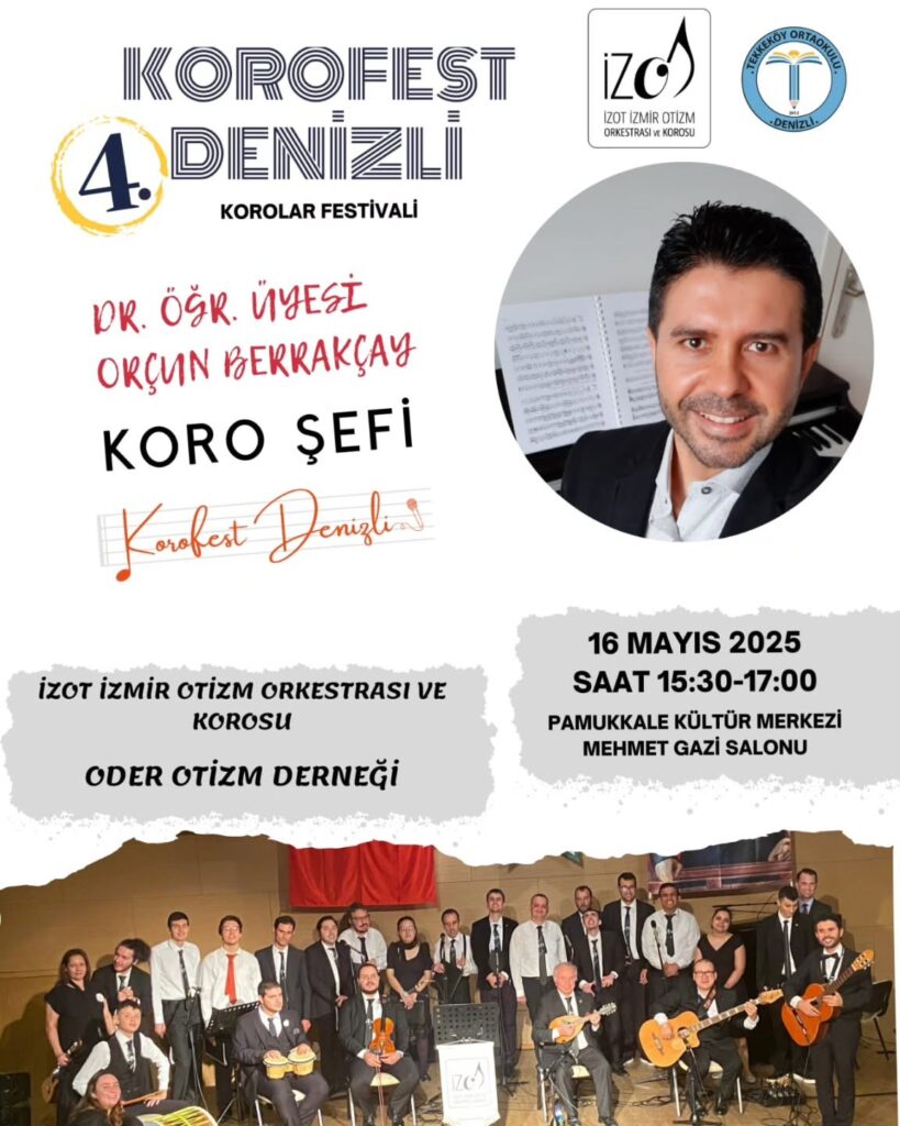 16 Mayıs 2025 tarihinde Denizli Nihat Zeybekçi Kongre ve Kültür Merkezi’nde gerçekleştirilen 4. Korofest Denizli Korolar Festivali’ne katıldık. İzmir Demokrasi Üniversitesi Otizm Uygulama ve Araştırma Merkezi Müdürü Dr. Öğr. Üyesi Orçun Berrakçay şefliğinde İZOT İzmir Otizm Orkestrası ve Korosu olarak jüri karşısında sahne aldığımız festivalde “Jüri Özel Ödülü”nü kazandık.