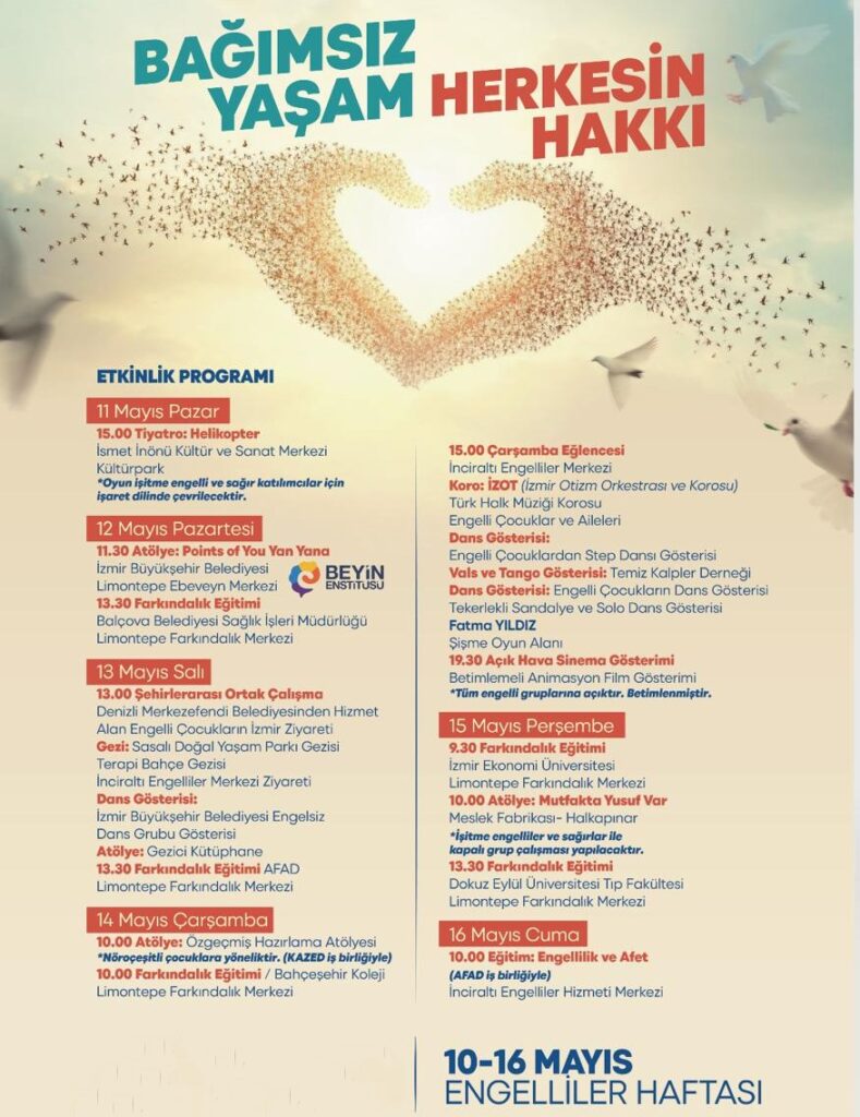 14 Mayıs 2025 tarihinde Engelliler Haftası kapsamında İnciraltı Engelliler Merkezi’nde sahne gösterileri ve dans etkinliklerinden oluşan “Çarşamba Eğlencesi” düzenlendi. Etkinlikte İzmir Demokrasi Üniversitesi Otizm Uygulama ve Araştırma Merkezi Müdürü Dr. Öğr. Üyesi Orçun Berrakçay şefliğinde İZOT İzmir Otizm Orkestrası ve Korosu da bir konser gerçekleştirdi.