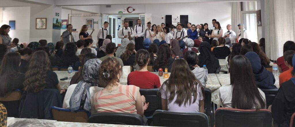 22 Mayıs 2025 tarihinde Kütahya Ali Güral Lisesi’nde İzmir Demokrasi Üniversitesi Otizm Uygulama ve Araştırma Merkezi Müdürü Dr. Öğr. Üyesi Orçun Berrakçay şefliğinde ve Uzman Psikolog Zeynep Sönmez Berrakçay moderatörlüğünde İZOT İzmir Otizm Orkestrası ve Korosu olarak sahne aldık. Konsere Okul Müdürü Mehmet Emin Özcan, öğretmenler, öğrenciler veKütahya Anadolu Öğretmen Lisesi Öğretmenleri katıldılar.
